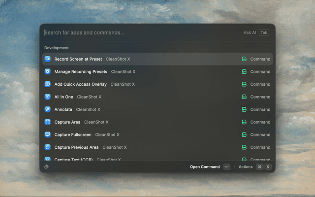 CleanShot X is a versatile screen capture and recording tool designed to make capturing, recording, and enhancing your screenshots as easy and efficient as possible. This user guide provides detailed instructions on how to use the CleanShot X Extension for Raycast.