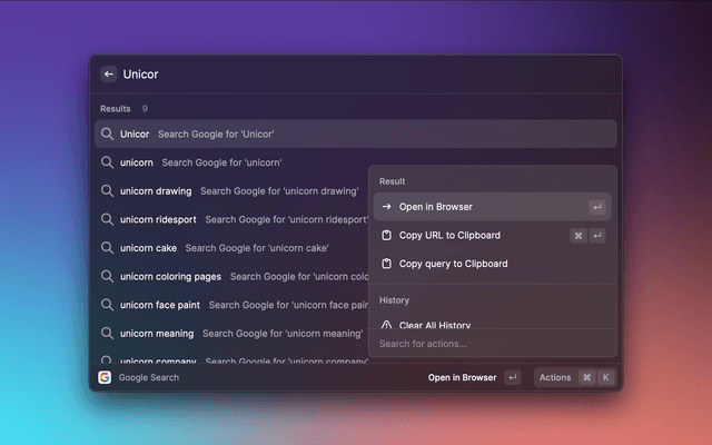 Google search with autosuggestions is an extension for Raycast.