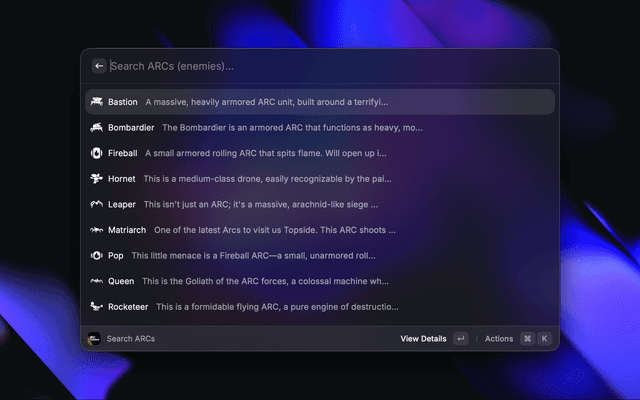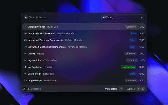 A Raycast extension for Arc Raiders that lets you quickly search items, quests, enemies, events, and more.