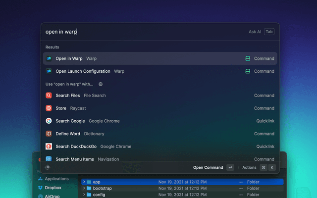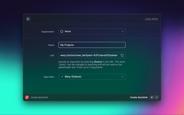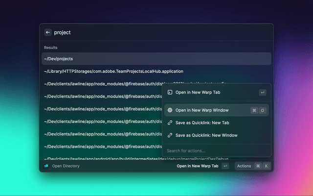 Open Warp tabs and windows. You can also open Launch Configurations so you can reopen the same set of sessions per project quickly.