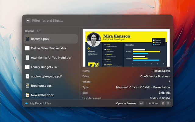 My Recent FilesView recently accessed files (work/school accounts only)
