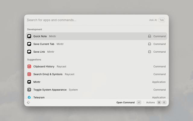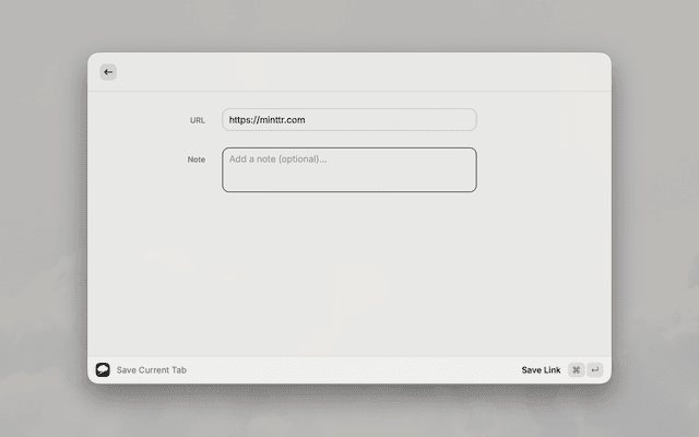 Quick capture for Minttr - save notes and links instantly from Raycast.